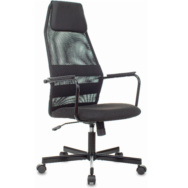 —Кресло офисное Бюрократ KB-5M черный (сетка/ткань, до 120 кг, крестовина металл, колесики пластик, подголовник)