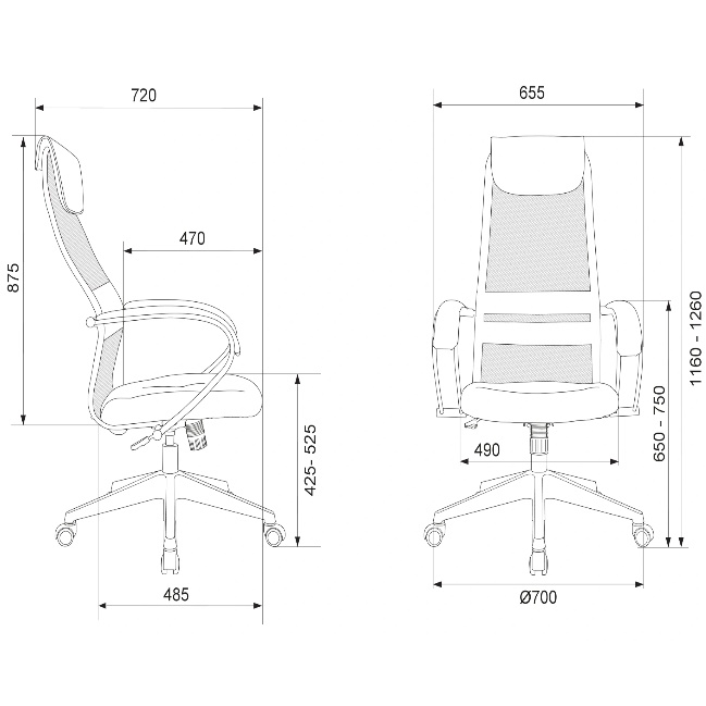 | Высота кресла (мин), мм | 1160 |