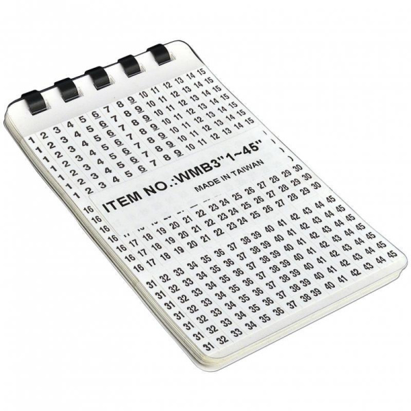 Самоклеющиеся маркеры в виде блокнота на 10 страниц с набором цифр в виде прямоугольных этикеток, для маркировки кабеля и провода. При выборе этикетки необходимо учитывать внешний диаметр кабеля, количество и величину цифр для его обозначения. Цифры отделяются от книжки и за счет самоклеящейся основы наклеиваются на маркируемую поверхность. Защитная пленка предохраняет маркеры от загрязнения.