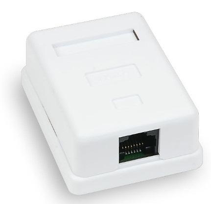 WT-2012 Белая, однопортовая, накладная Материал - пластик ABS Предназначена для коммутации компьютерной сети с ПК посредством патч-корда Для кабеля UTP 5e Крепления к поверхности в комплекте