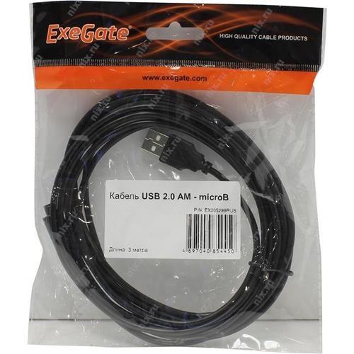 Кабель USB - microUSB 3.0м, ExeGate EX-CC-USB2-AMmicroBM5P-3.0 черный